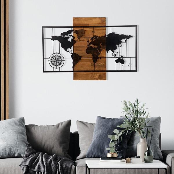 AG Fa fali dekoráció, World Map Wıth Compass (279ENZ1744)