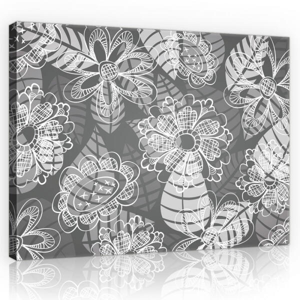 Consalnet Vászonkép, Levelek, fekete-fehér, 60x40 cm méretben (C5-11280O4)
