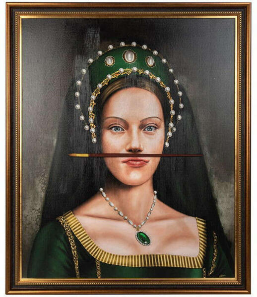 Ecsetbajusz - Klasszikus festmény modern csavarral (100x120 cm) ?️ Ez a lenyűgöző 100x120 cm-es festmény egy reneszánsz hölgy portréját ábrázolja, egy humoros csavarral: egy ecsettel a bajusza helyén. A klasszikus portréfestészet elemei ötvöződnek egy modern, vicces elemmel, ami garantáltan feldobja otthonát. ? A festmény kiemelkedő tulajdonságai:Egyedi stílus: A klasszikus és modern művészet ötvözete. Magas minőség: Klasszikus keretben, gondosan kidolgozott részletekkel. Figyelemfelkeltő: A humoros elem garantáltan beszélgetésindító lesz. Méretek: 100 cm magas, 120 cm széles, 3 cm mély. Kiváló minőségű anyagok: Tartós és szép megjelenésű. Képzelje el ezt a műalkotást a nappalijában vagy a hálószobájában! A "Bajusz Ecset" festmény nem csak egy dekoráció, hanem egy beszélgetésindító, egy művészi nyilatkozat, ami egyedi hangulatot kölcsönöz otthonának. ✨