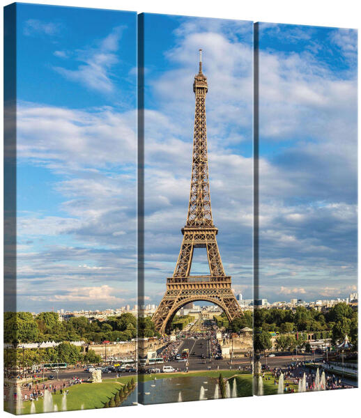 Eiffel-torony vászonkép szett: 3 részes, 100x90 cm-es látvány a nappaliba ? Hozd el Párizs varázsát az otthonodba ezzel a lenyűgöző, 3 részes Eiffel-torony vászonképpel! A képek élethű részletgazdagsággal mutatják be a híres tornyot, és garantáltan feldobják a szobád hangulatát. ✨ A szett tartalma: 3 db vászonkép (3 x 100 x 30 cm) 2-2,5 cm-es rés hagyása ajánlott a képek közé a tökéletes összhatásért. Teljes méret: 100 cm magas x 90 cm széles Kiváló minőségű, színes high-tech nyomtatás2-3 cm vastag MDF segédvázra feszített vászonKönnyű felszerelés: A képek könnyen felszerelhetők, és a falra akasztva gyönyörű látványt nyújtanak. A képek között hagyj 2-2,5 cm-es rést a tökéletes összhatás érdekében. A vászonképek strapabíróak és hosszú éveken át élvezheted majd a szépségüket. Díszítsd otthonod stílusosan! Ez a vászonkép szett tökéletes választás a modern és elegáns otthonokba. A képek nagyszerűen mutatnak a nappaliban, hálószobában vagy akár a dolgozószobában is. Készíts egyedi hangulatot otthonodban ezzel a gyönyörű Eiffel-torony vászonképpel!