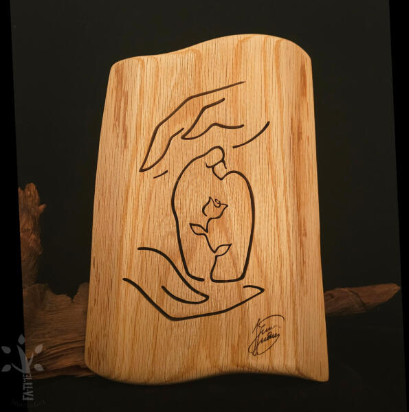 Gondviselés Tölgyfából készült falikép Simon András grafikájával.