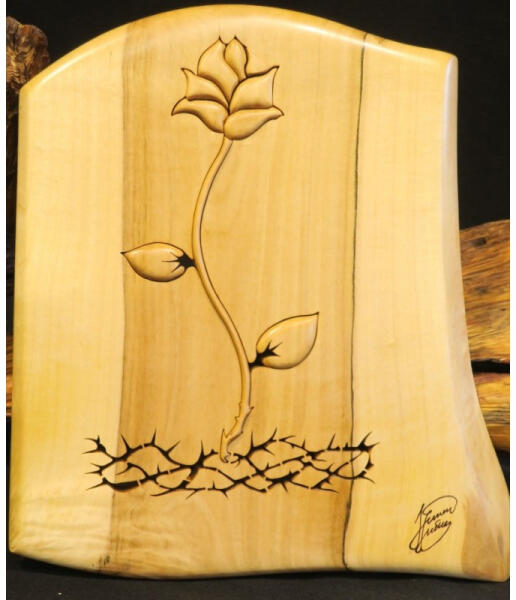 Ez a csodálatos falikép egy gesztes juharfából készült. Nagyon szép a fában a tónusváltás, ezért nem csak a grafika élmény, hanem maga a fa is.