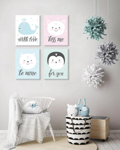 Vászonfestmények gyermekeknek - Öröm és fantázia minden falonA gyerekszoba a játékok, az álmok és a mesék helye. A gyermekeknek szánt vászonfestmények színt, vidám motívumokat és pozitív energiát visznek abba a térbe, ahol gyermekei felnőnek. Az aranyos állatoktól kezdve a mesefigurákon át a motivációs jelekig minden egyes festmény biztonságos és ösztönző környezetet teremt a játékhoz és a pihenéshez. 3 tipp a megfelelő gyermekkép kiválasztásához1. tipp: A csecsemők számára a lágy pasztell motívumok alkalmasak egyszerű formákkal, amelyek megnyugtatják és stimulálják a szemet. 2. tipp: Az idősebb gyermekek értékelni fogják az állatokat, járműveket vagy az űrbéli világot ábrázoló képeket - hobbijuktól és érdeklődési körüktől függően. Tipp 3: A pozitív szöveggel vagy a gyermek nevével ellátott képek kedves személyes kiegészítő és ajándék is lehetnek egyszerre. Miért válassza gyermek vászonképeinket?Biztonságos és szagmentes: a kicsiknek is alkalmas - környezetbarát festékek és nincs vegyszerszag. Lágy színek és játékos dizájn. Könnyű és strapabíró: Minden képet könnyű fakeretre feszítünk, és minden további igazítás nélkül felakasztható. Tartós kivitelezés: fakulásálló vászon és ellenáll a gyermekek mindennapi világának. Európa szívében készült.