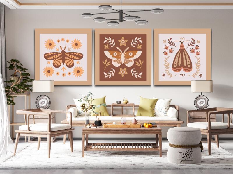 Festés számok szerint - Boho pillangó (3 db-os készlet) Méret: 50x50cm (3db), Keretezés: Keret nélkül (csak a vászon)