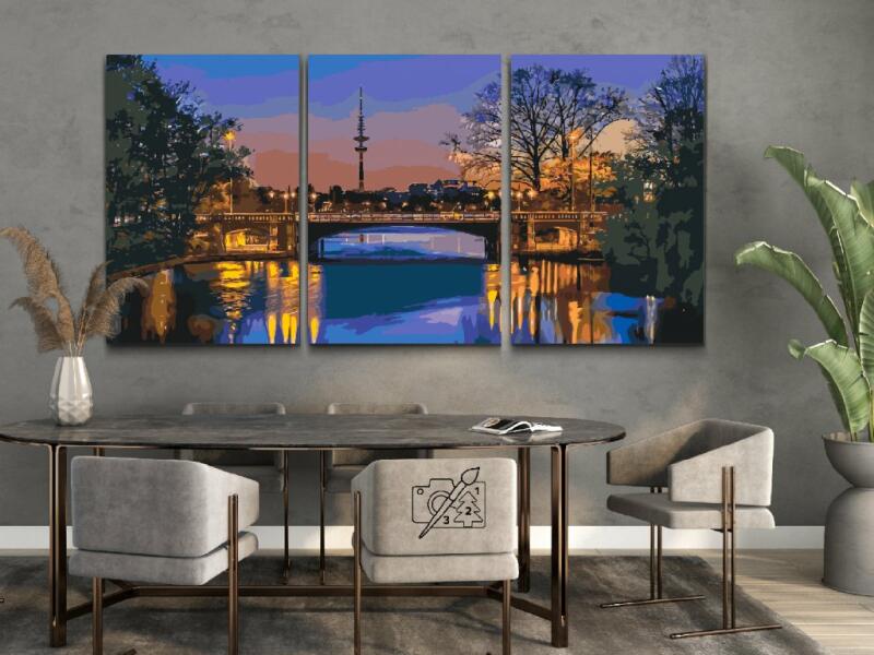 Festés számok szerint - Hamburg naplementében (3 db-os készlet) Méret: 30x40cm (3db), Keretezés: Kartonlemezen