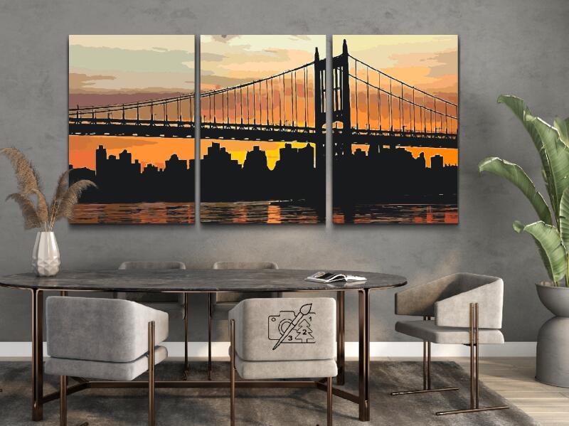 Festés számok szerint - Naplemente a városban (3 db-os készlet) Méret: 30x40cm (3db), Keretezés: Keret nélkül (csak a vászon)