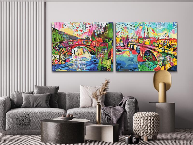 Festés számok szerint - Színes híd (2 db-os készlet) Méret: 40x50cm (2db), Keretezés: Műanyagtáblával