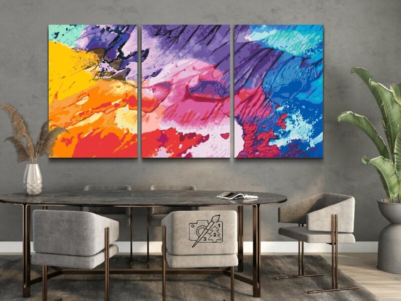 Festés számok szerint - Színes minta 1 (3 db-os készlet) Méret: 30x40cm (3db), Keretezés: Kartonlemezen