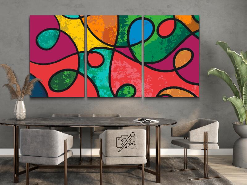 Festés számok szerint - Színes minta 3 (3 db-os készlet) Méret: 30x40cm (3db), Keretezés: Kartonlemezen
