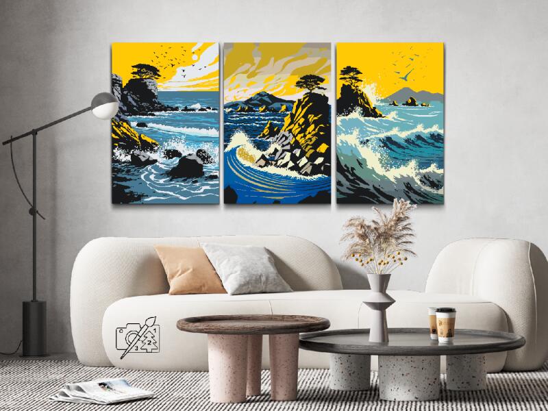 Festés számok szerint - Tengeri hullámok (3 db-os készlet) Méret: 40x60cm (3db), Keretezés: Műanyagtáblával