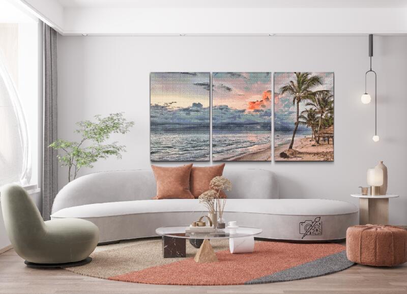 Gyémánt kirakó - Csendes strand (3 db-os készlet) Méret: 40x60cm (3db), Keretezés: Kartonlemezen, Gyémántok: Négyzet alakú