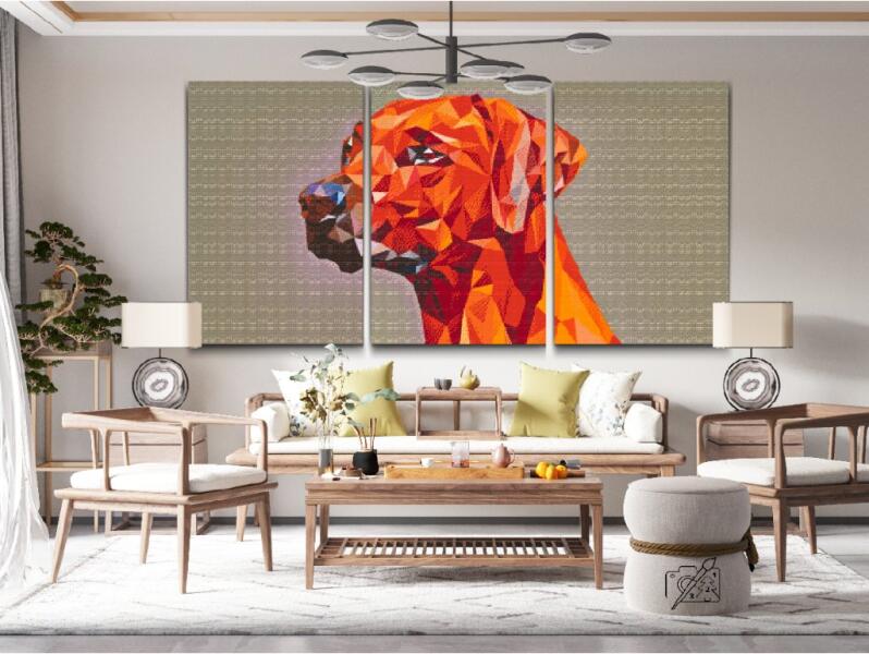 Gyémánt kirakó - Geometrikus kutya (3 db-os készlet) Méret: 40x60cm (3db), Keretezés: Keret nélkül (csak a vászon), Gyémántok: Kerek