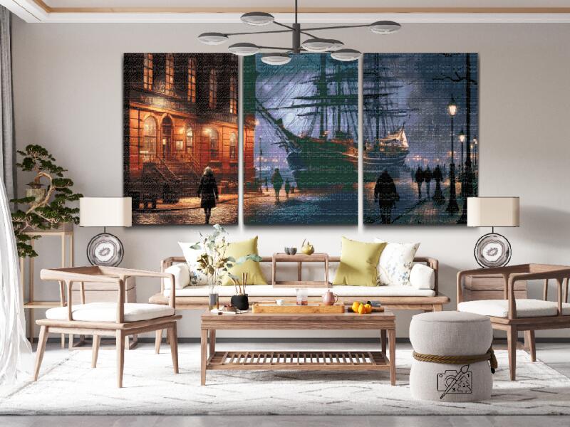 Gyémánt kirakó - Hamburg éjszaka (3 db-os készlet) Méret: 40x60cm (3db), Keretezés: Kartonlemezen, Gyémántok: Kerek