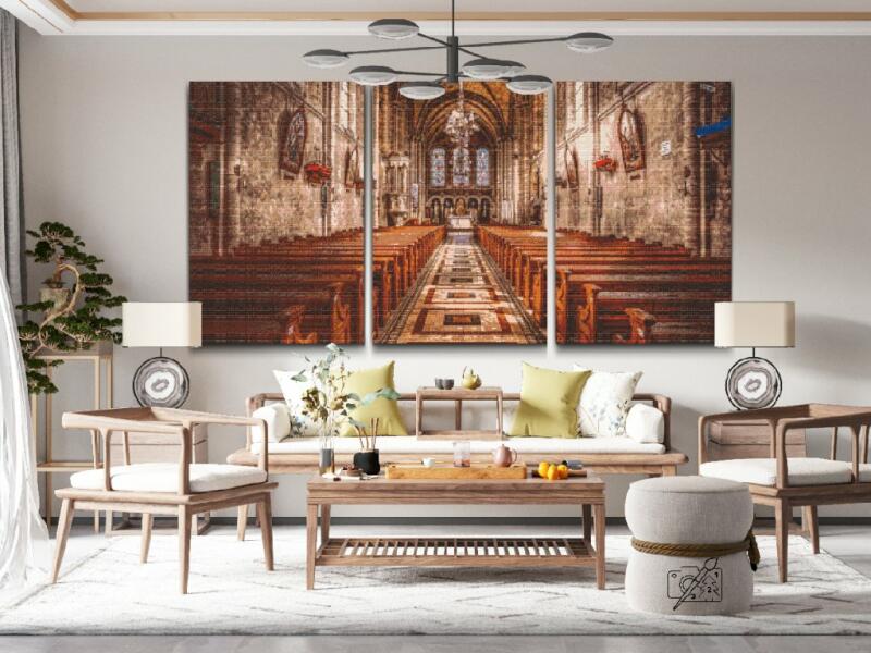 Gyémánt kirakó - Katedrális (3 db-os készlet) Méret: 30x40cm (3db), Keretezés: Kartonlemezen, Gyémántok: Kerek