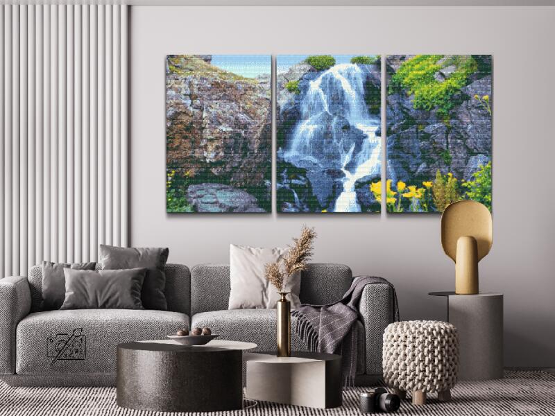 Gyémánt kirakó - Mágikus vízesés (3 db-os készlet) Méret: 30x40cm (3db), Keretezés: Kartonlemezen, Gyémántok: Négyzet alakú