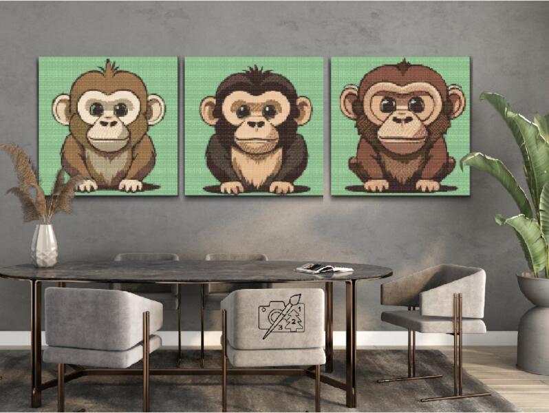Gyémánt kirakó - Majmok (3 db-os készlet) Méret: 50x50cm (3db), Keretezés: Kartonlemezen, Gyémántok: Kerek