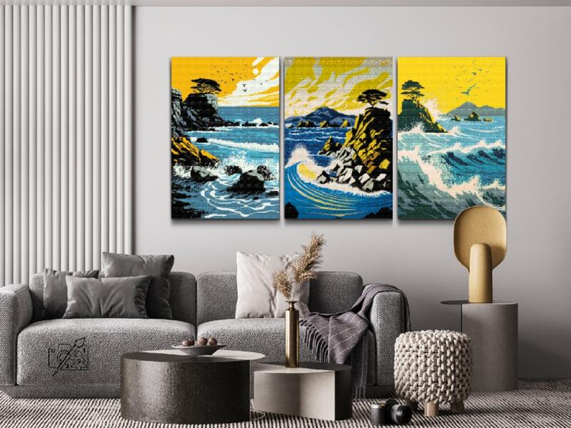 Gyémánt kirakó - Tengeri hullámok (3 db-os készlet) Méret: 30x40cm (3db), Keretezés: Kartonlemezen, Gyémántok: Kerek