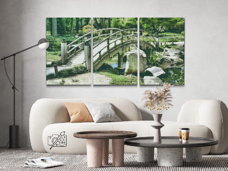 Gyémántszemes festmény - Japánkert (3 db-os készlet) Méret: 30x40cm (3db), Keretezés: Kartonlemezen, Gyémántok: Kerek