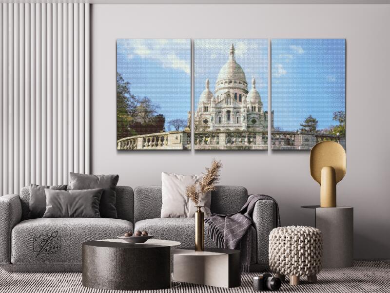 Gyémántszemes festmény - Sacre Coeur (3 db-os készlet) Méret: 30x40cm (3db), Keretezés: Keret nélkül (csak a vászon), Gyémántok: Kerek