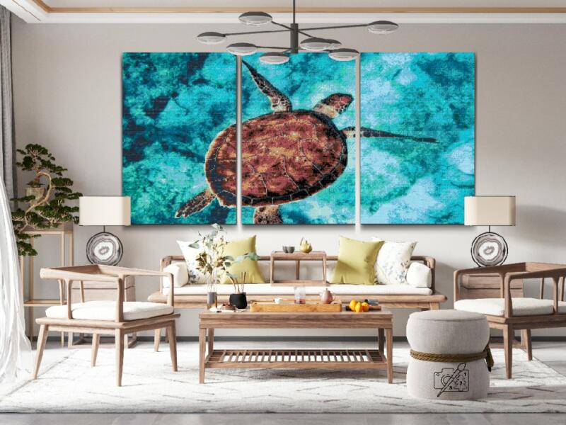 Gyémántszemes festmény - Tengeri teknős (3 db-os készlet) Méret: 30x40cm (3db), Keretezés: Keret nélkül (csak a vászon), Gyémántok: Kerek