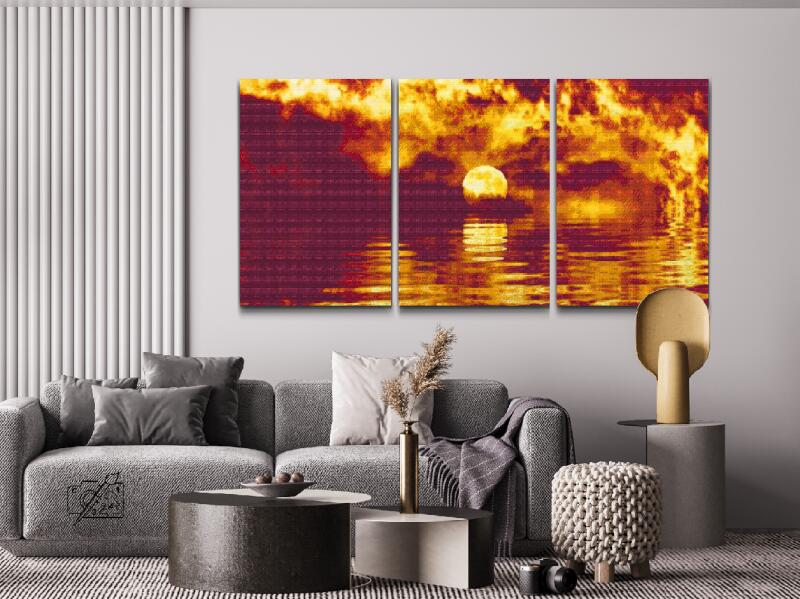 Gyémántszemes festmény - Tűz naplemente (3 db-os készlet) Méret: 30x40cm (3db), Keretezés: Kartonlemezen, Gyémántok: Kerek