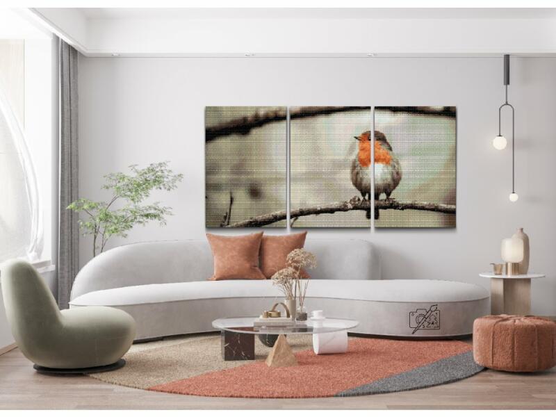 Gyémántszemes festmény - Vörösbegy (3 db-os készlet) Méret: 30x40cm (3db), Keretezés: Kartonlemezen, Gyémántok: Kerek