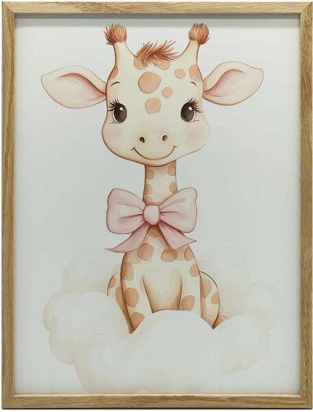 Kis Zsiráf Felhőn - Gyerek Plakat (70x100 cm) ?☁️ Ez a bájos, 70x100 cm-es faliplakát egy aranyos kis zsiráfot ábrázol egy puha felhőn ülve. Tökéletes választás gyermekszobákba, hogy vidám és álmodozó hangulatot teremtsen. A képet egy tehetséges magyar művész, Marcin Zbijowski festette, és prémium minőségű, 230 gsm-es mat papírra nyomtatták. A sötétbarna fa keret elegáns megjelenést kölcsönöz a képnek. Főbb jellemzők:Méret: 70x100 cm Anyag: 230 gsm-es mat papír Keret: Sötétbarna fa keret Motívum: Aranyos kis zsiráf felhőn Stílus: Vidám, álmodozó Tökéletes: Gyermekszobákba Miért válaszd ezt a plakátot?Egyedi design: Marcin Zbijowski tehetséges művész munkája. Prémium minőség: Tartós, kiváló minőségű anyagokból készült. Elegáns keret: A sötétbarna fa keret tökéletesen kiegészíti a képet. Vidám hangulat: A bájos zsiráf mosolyt csal mindenki arcára. Könnyű tisztítás: A mat papír könnyen tisztítható. A csomag tartalma: 1 db 70x100 cm-es faliplakát sötétbarna fa kerettel