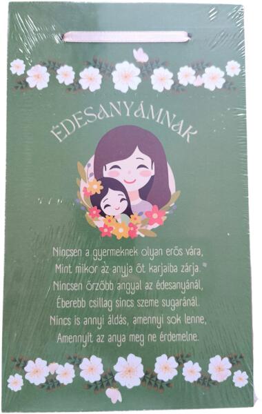 Dísztábla - Édesanyának 3 Mérete: 15 x 25 x 0,5 cm Anyaga: fa Felirat: Nincsen a gyermeknek olyan erős vára, Mint mikor az anyja őt karjaiba zárja. Nincsen őrzőbb angyal az édesanyánál, Éberebb csillag sincs szeme sugaránál. Nincs is annyi áldás, amennyi sok lenne, Amennyit az anya meg ne érdemelne. . Ha szeretnéd ezt neki meghálálni valami különlegessel, ez a tábla tökéletes választás. A rajta lévő kedves szavak biztosan nagyon tetszenek majd neki. Ajánljuk Anyák napjára, ünnepnapokra vagy ha csak szeretnéd őt valamivel meglepni.
