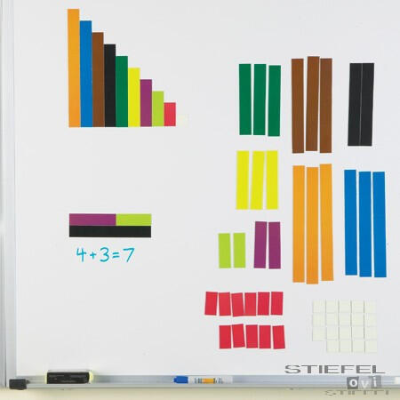 Színes, extra nagy mágneses rudak készlete, ideális frontális szemléltetéshez és számos matematikai készség gyakorlásához.