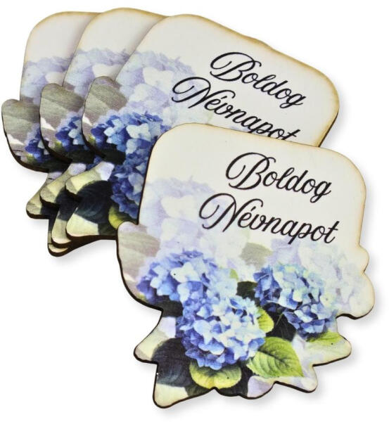 Nyomtatott dekorkarton - Boldog névnapot virágos tábla - kék 4db/csomag