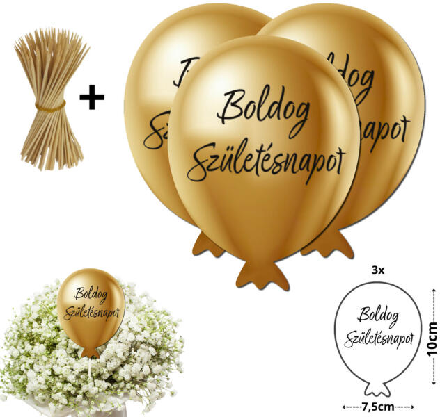Nyomtatott dekorkarton - Boldog születésnapot lufi - arany 3db/csomag