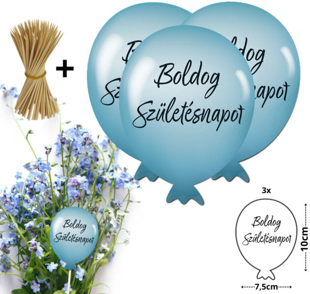 Nyomtatott dekorkarton - Boldog születésnapot lufi - pasztell kék 3db/csomag