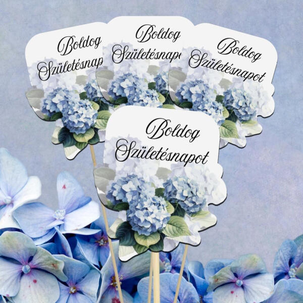 Nyomtatott dekorkarton - Boldog születésnapot virágos tábla - kék 4db/csomag - papelito