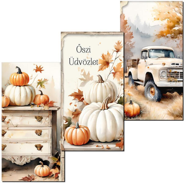 Nyomtatott dekorkarton - Fehér-narancs tök táblák 3db/csomag - papelito