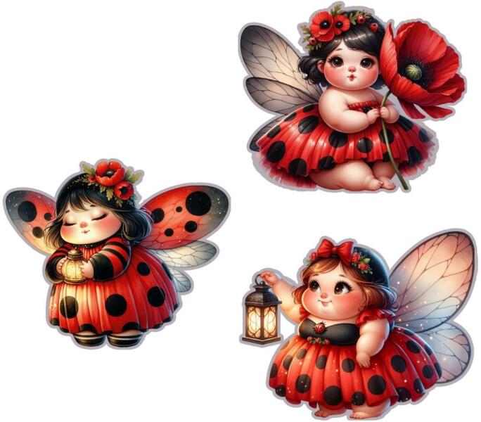 Nyomtatott dekorkarton - Katica tündérek 3db/csomag