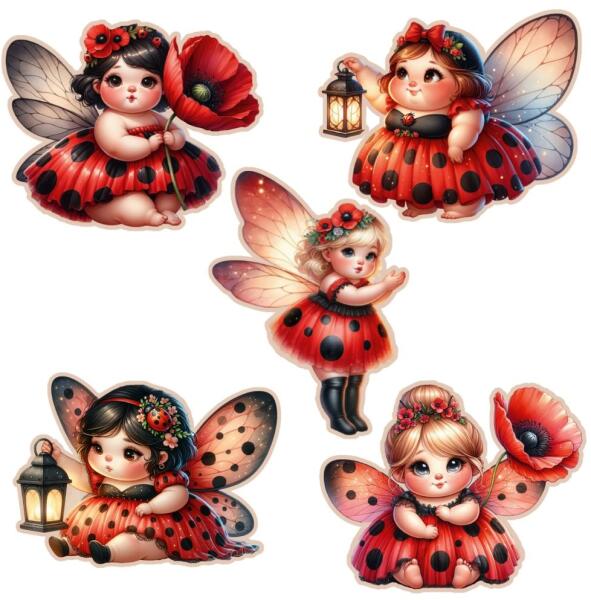 Nyomtatott dekorkarton - Katica tündérek 5db/csomag