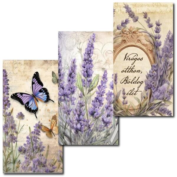 Nyomtatott dekorkarton - Levendulás táblák 3db/csomag - kosarbolt