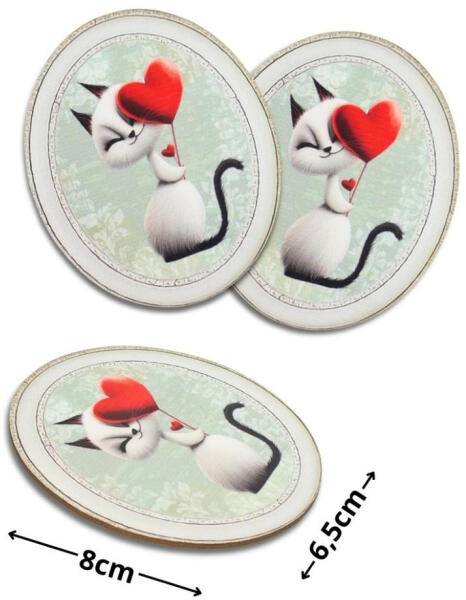 Nyomtatott dekorkarton - Valentin napi cica ovál tábla 3db/cs - papelito