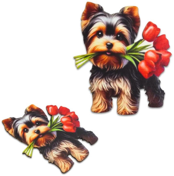 Nyomtatott dekorkarton - Yorkshire kutya virágcsokorral 2db/cs - papelito