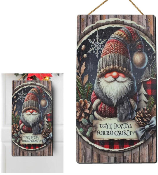 Nyomtatott fa tábla - Hoztál forrócsokit? manó 13x24, 3cm - papelito