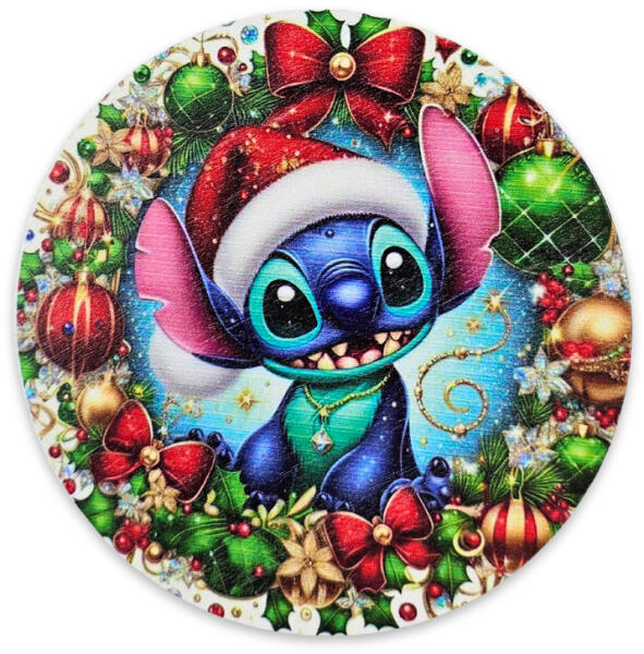 Nyomtatott fa tábla koszorú közép - Karácsonyi stitch 14, 8cm - papelito