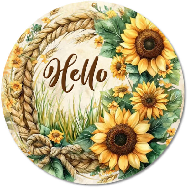 Nyomtatott fa tábla koszorú közép - Napraforgós Hello 11, 8cm - papelito