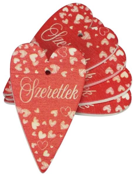 Nyomtatott fa tábla -Szeretlek szív 6cm piros 5db