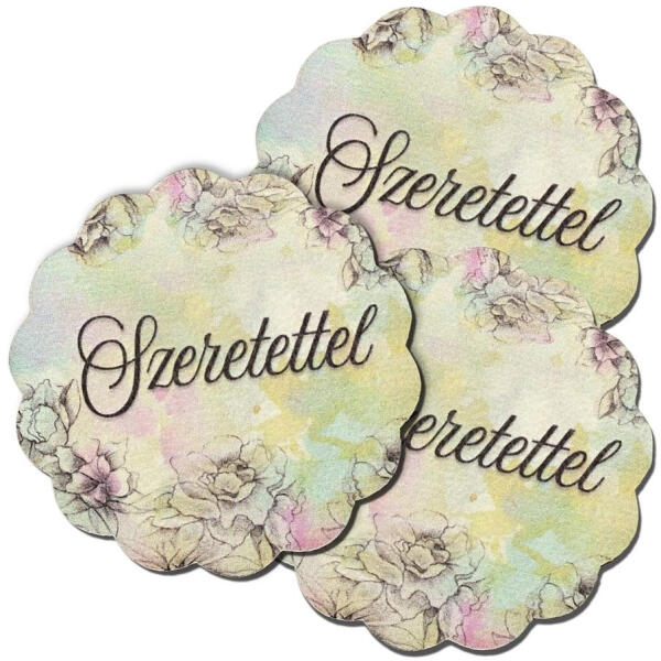 Nyomtatott fa tábla - Virágos tábla - Szeretettel 3db/csom - papelito