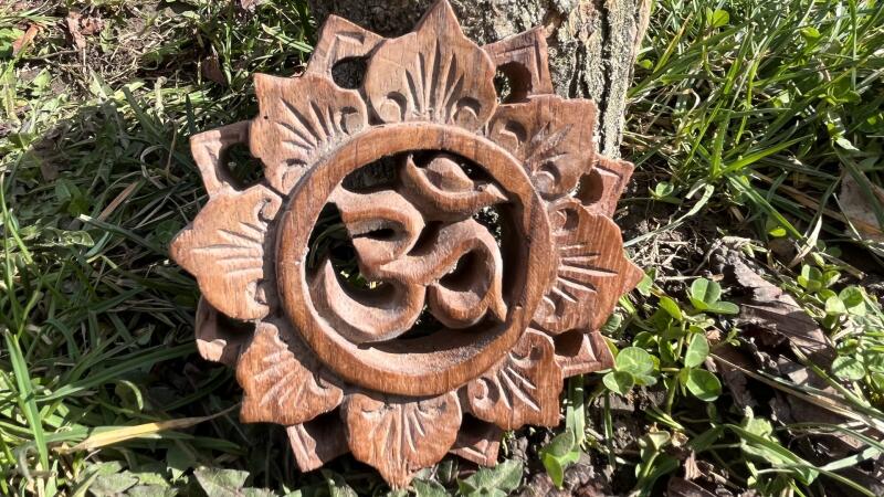 Rózsafából faragott gyönyörű Om mantra