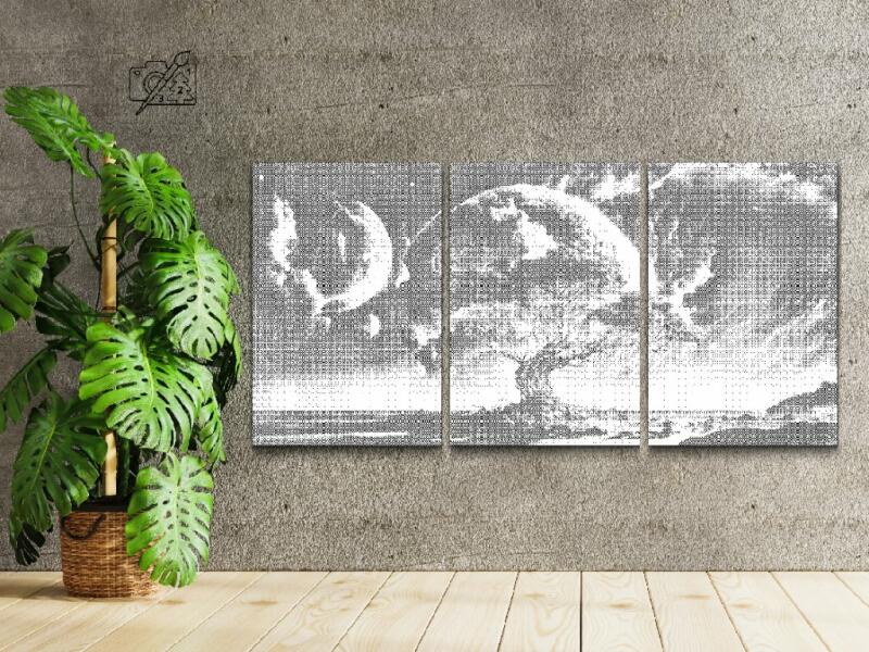 PontPöttyöző - A fa és a világegyetem (3 db-os készlet) Méret: 40x60cm (3db), Keretezés: Kartonlemezen, Szín: Fekete