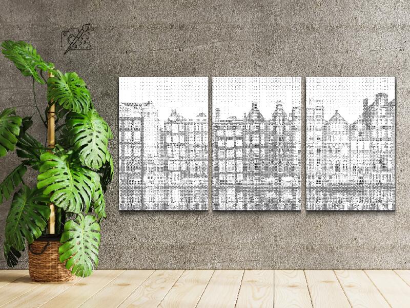PontPöttyöző - Amszterdami otthonok 2 (3 db-os készlet) Méret: 40x60cm (3db), Keretezés: Műanyagtáblával, Szín: Kék