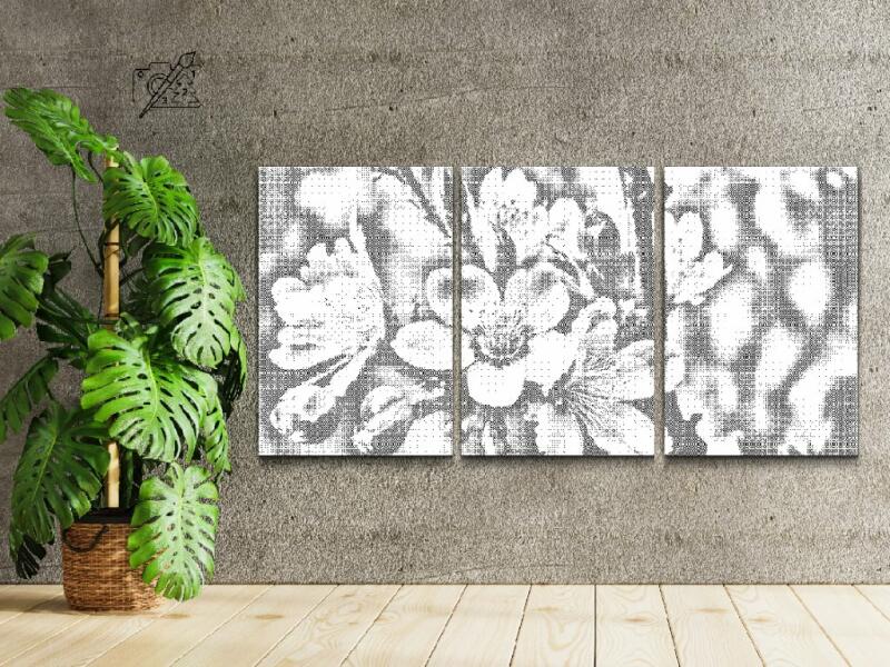 PontPöttyöző - Cseresznyevirág (3 db-os készlet) Méret: 30x40cm (3db), Keretezés: Kartonlemezen, Szín: Kék