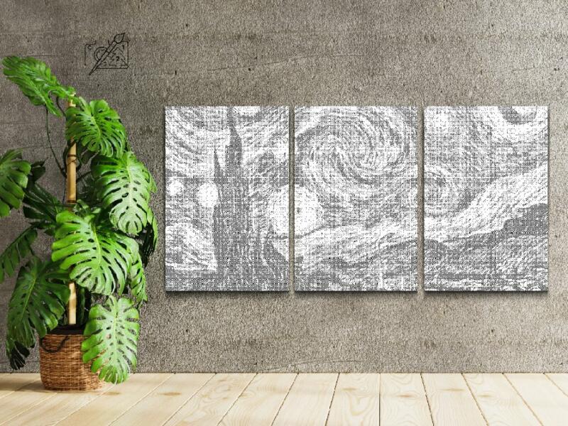PontPöttyöző - Csillagos éj (3 db-os készlet) Méret: 30x40cm (3db), Keretezés: Kartonlemezen, Szín: Fekete