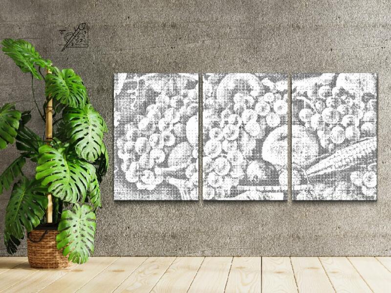 PontPöttyöző - Gyümölcskosár (3 db-os készlet) Méret: 30x40cm (3db), Keretezés: Kartonlemezen, Szín: Fekete